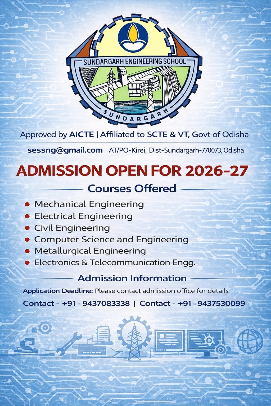 Established in 1997, Sundargarh Engineering School has evolved as one of the most